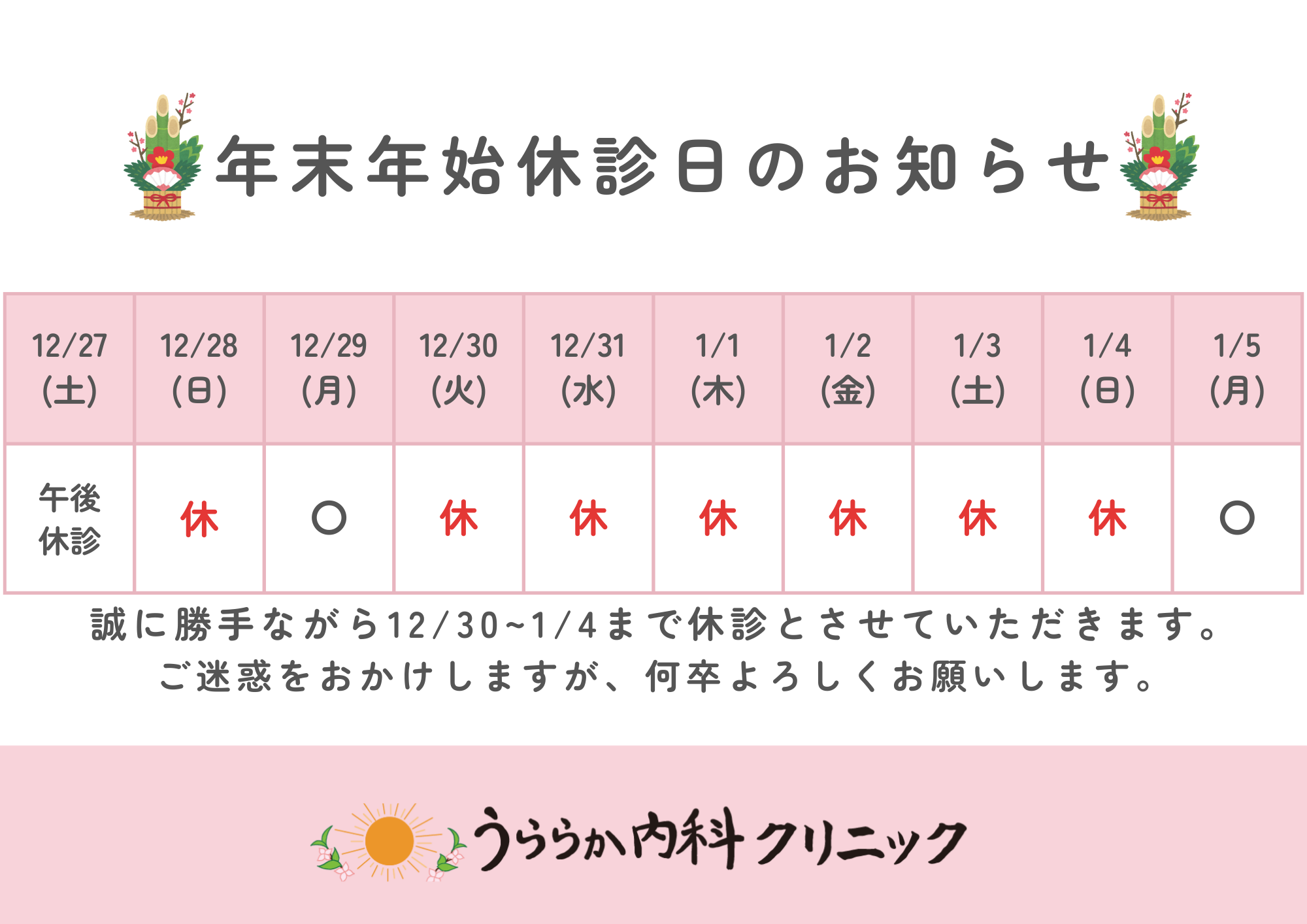 2025/10/1(火)より、インフルエンザワクチン接種を開始いたします。 3歳~64歳の方は、3500円です。 川口市に在住の65歳以上の方は、1000円です。 川口市以外の65歳以上の方は注射可能ですが、料金が異なります。 子ども(3歳~12歳)は、当院で連続接種した場合、2回目は3000円になります。 1回目と2回目は、2~4週間空けてください。 予約優先となりますが、受付時間内でしたら予約なしでも接種可能です。 また、事前にホームページの問診票をダウンロードしていただき、印刷・記入をお持ちいただきますとスムーズにご案内できます。